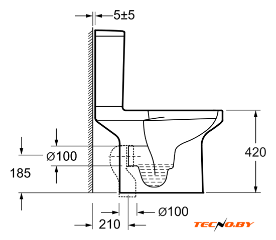 напольный, конструкция: компакт, нижний подвод воды, универсальный выпуск