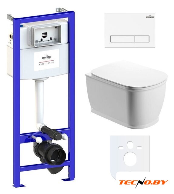 Модель идет в полной комплектации, включающей сам унитаз, бачок с кнопкой и инсталляцию, а также удобное сиденье со встроенной пневмокрышкой с микролифтом. Это означает, что вам не придется дополнительно искать и подбирать соответствующие аксессуары для установки — все уже включено в комплект.
