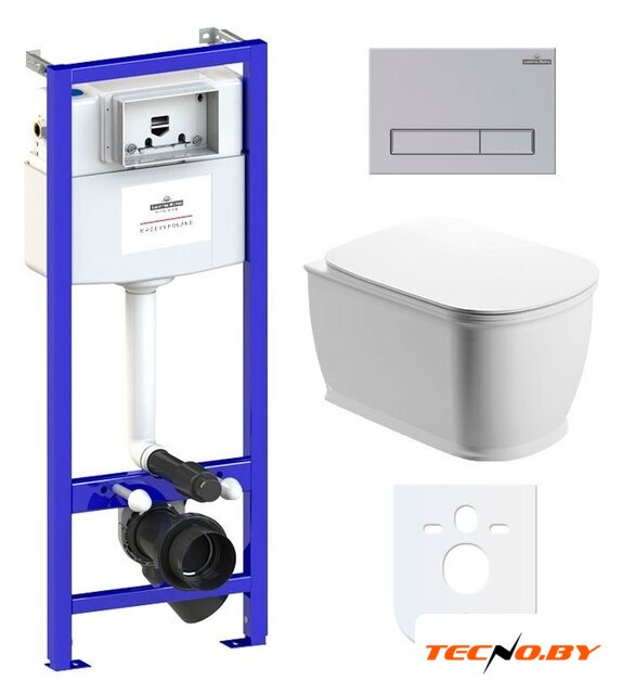 В комплект входит инсталляция с кнопкой, что облегчает процесс установки. Также в комплекте вы найдете бачок, необходимый для подключения системы слива, и сиденье, что обеспечивает полную готовность к эксплуатации сразу после установки. Отсутствие встроенного бачка для чистящей жидкости компенсируется простотой конструкции и надежностью используемого материала.