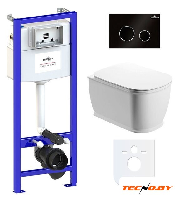 В комплекте с унитазом идет бачок и все необходимые элементы для установки, включая сиденье и инсталляцию с кнопкой. Отсутствие бачка для чистящей жидкости делает его более экономичным и экологичным вариантом для вашего дома.