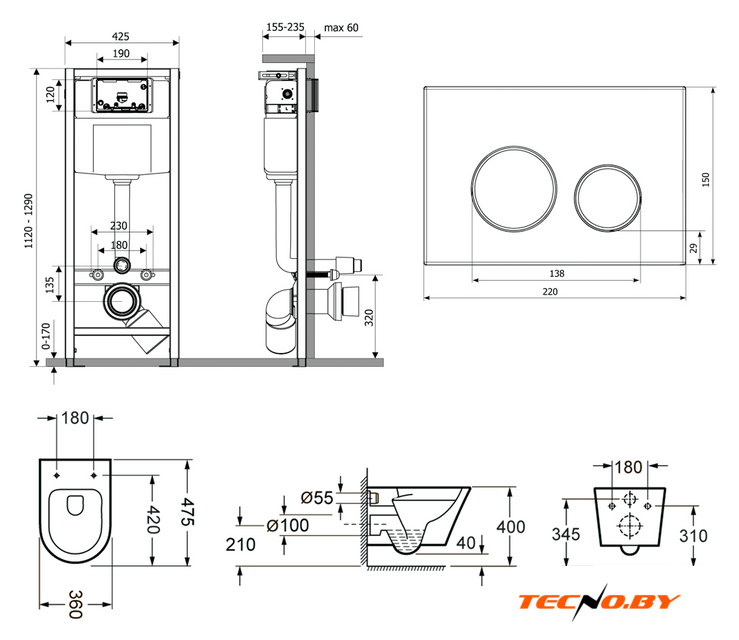 Конструкция без бачка и задний подвод воды делают этот унитаз идеальным выбором для современных ванных комнат с подвесными системами. Двухрежимный слив позволяет выбрать оптимальный расход воды, обеспечивая экономичный расход ресурсов. Несмотря на компактные габариты (ширина 36 см, глубина 47.5 см, высота 40 см), унитаз обеспечивает полный комфорт использования для любого пользователя.