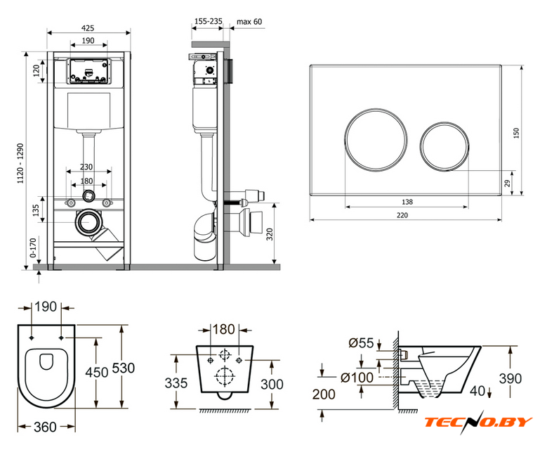С установкой унитаза проблем не возникнет – конструкция предусматривает заднее подключение воды, а комплект включает все необходимое для монтажа. В комплект входит инсталляция и кнопка слива, что делает приобретение еще более выгодным. Размеры унитаза — 36 см в ширину, 53 см в глубину и 39 см в высоту, что делает его подходящим даже для небольших ванных комнат.