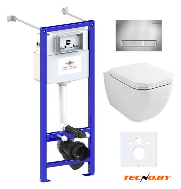 подвесной, без бачка, задний подвод воды, горизонтальный выпуск, двухрежимный слив, с сиденьем