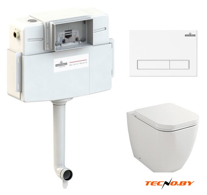 приставной, низкорасположенный бачок, задний подвод воды, универсальный выпуск, двухрежимный слив, с сиденьем