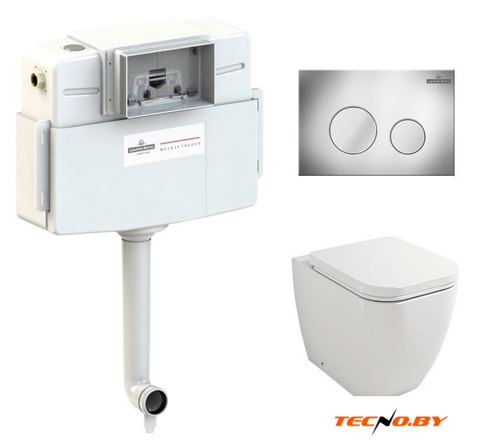 приставной, низкорасположенный бачок, задний подвод воды, универсальный выпуск, двухрежимный слив, с сиденьем