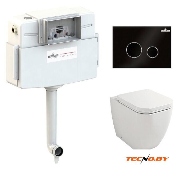 приставной, низкорасположенный бачок, задний подвод воды, универсальный выпуск, двухрежимный слив, с сиденьем