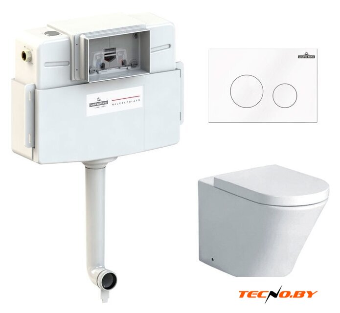 приставной, низкорасположенный бачок, задний подвод воды, универсальный выпуск, двухрежимный слив, с сиденьем