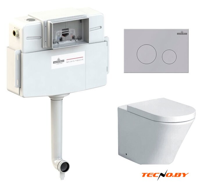приставной, низкорасположенный бачок, задний подвод воды, универсальный выпуск, двухрежимный слив, с сиденьем