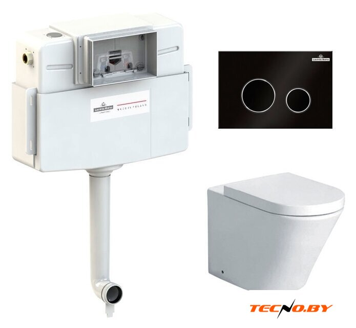 Унитаз монтируется приставным способом, что делает процесс установки быстрым и легким. Все необходимые компоненты уже в комплекте: бачок, сиденье и инсталляция с кнопкой. Системы подвода воды и выпуска продукции продуманы до мелочей, что позволяет избежать возможных сложностей при подключении.