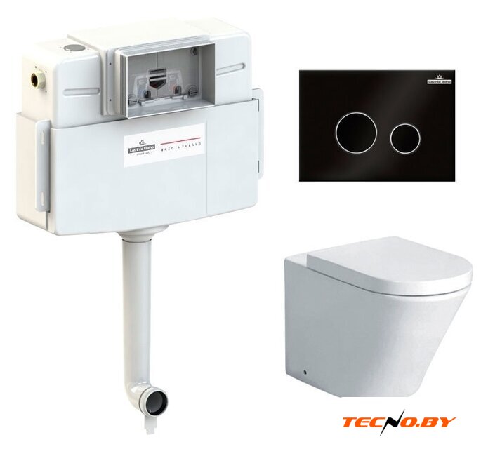 приставной, низкорасположенный бачок, задний подвод воды, универсальный выпуск, двухрежимный слив, с сиденьем