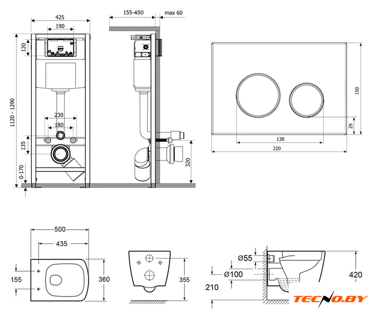 Унитаз поставляется с бачком для чистящей жидкости и всеми необходимыми элементами для установки, включая инсталляцию и сиденье. Комплектация «все в одном» экономит ваше время и средства, позволяя сразу приступить к монтажу без дополнительных приобретений.
