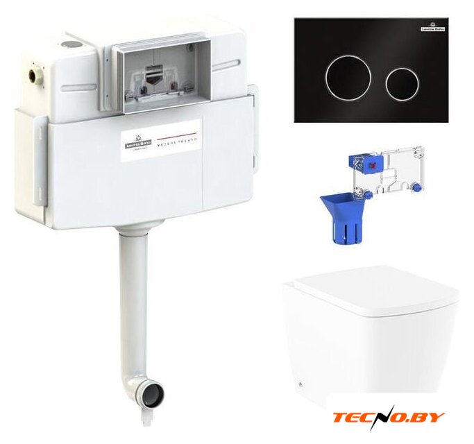 приставной, низкорасположенный бачок, задний подвод воды, универсальный выпуск, двухрежимный слив, с сиденьем