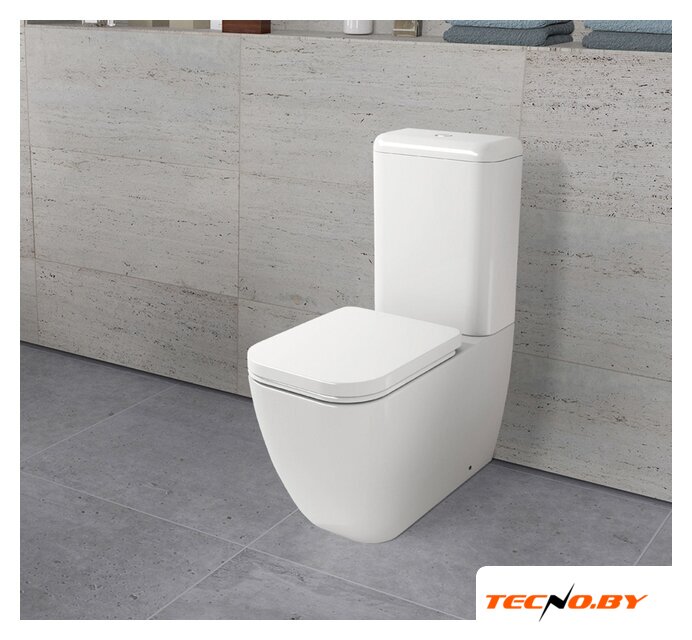 напольный, конструкция: компакт, задний подвод воды, горизонтальный выпуск, однорежимный слив, с сиденьем, безободковый
