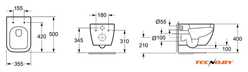 подвесной, без бачка, горизонтальный выпуск, с сиденьем