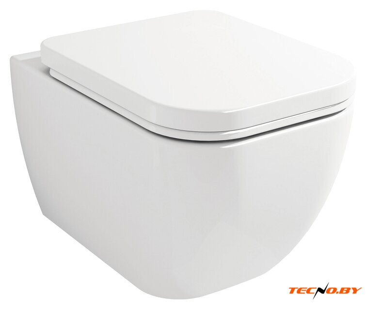 подвесной, конструкция: без бачка, задний подвод воды, горизонтальный выпуск, с сиденьем, безободковый