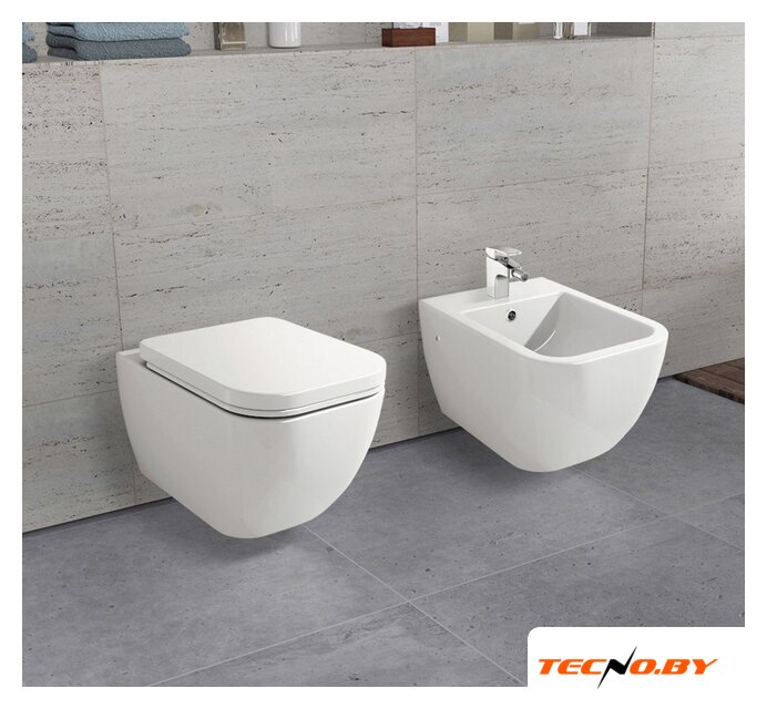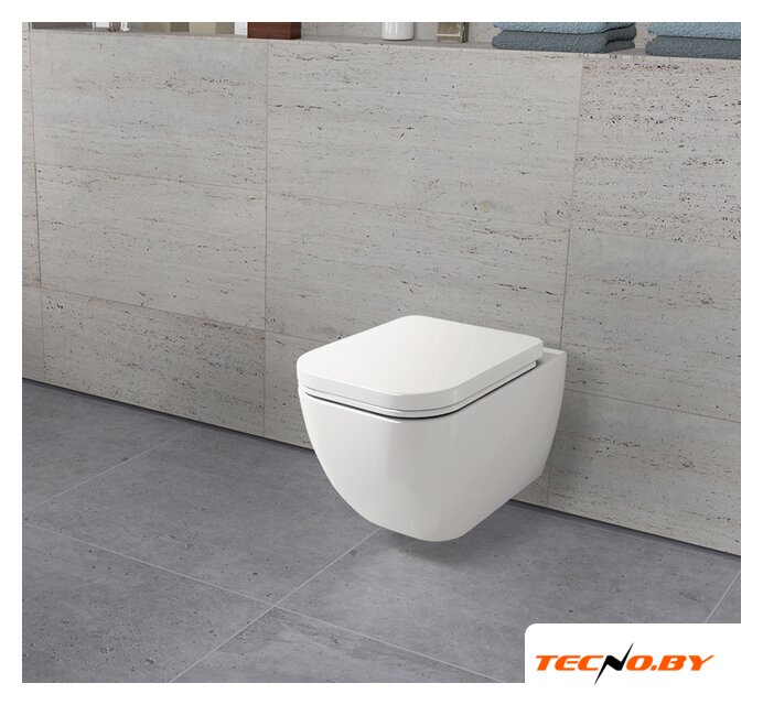 подвесной, конструкция: без бачка, задний подвод воды, горизонтальный выпуск, с сиденьем, безободковый