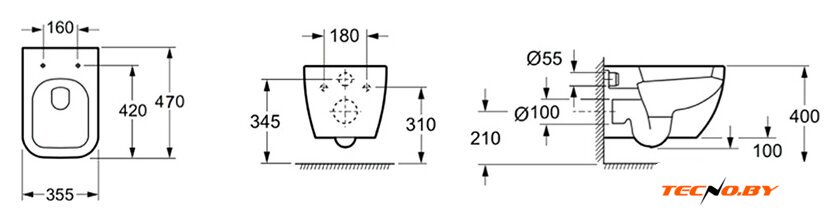 подвесной, без бачка, горизонтальный выпуск, с сиденьем