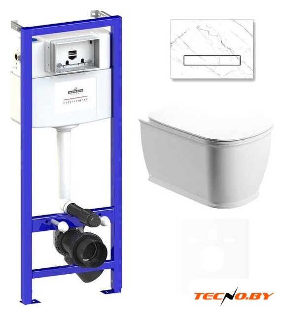 В комплекте с унитазом поставляется все необходимое для установки: бачок, инсталляция и кнопка смыва. Это избавляет от необходимости приобретать дополнительные элементы отдельно, делая процесс монтажа быстрым и удобным.