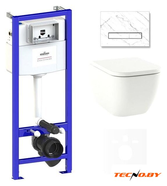 В комплектацию входит все необходимое для установки и использования: бачок, инсталляция и сиденье, выполненное из прочного дюропласта. Специальная пневмокрышка с микролифтом обеспечивает бесшумное и мягкое закрывание. Также в наборе имеется кнопка смыва, продуманная для удобного использования всеми членами семьи.