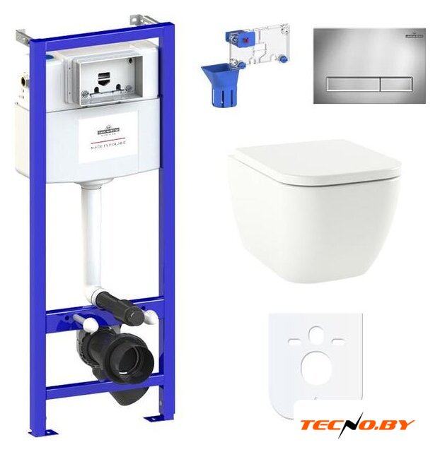 В комплекте находится все необходимое для установки и эксплуатации: практичный встроенный бачок, инсталляция с кнопкой и полезный бачок для чистящих жидкостей. Это гарантирует, что вы получите все нужные элементы для эффективной установки и использования унитаза без дополнительных затрат.