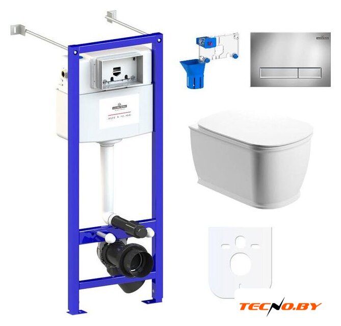 В комплект входит все необходимое для установки и функциональной работы: бачок с бачком для чистящей жидкости, инсталляция с кнопкой, сиденье и пневмокрышка. Наличие антибактериального покрытия снижает риск размножения бактерий, обеспечивая дополнительную гигиеничность.