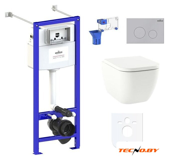 Комплектация включает в себя пневмокрышку с микролифтом, обеспечивающую бесшумное и плавное закрытие крышки. В комплекте также идет инсталляция с кнопкой для удобного управления смывом. Модель оснащена бачком для чистящей жидкости, что повышает общую гигиеничность и комфорт использования.
