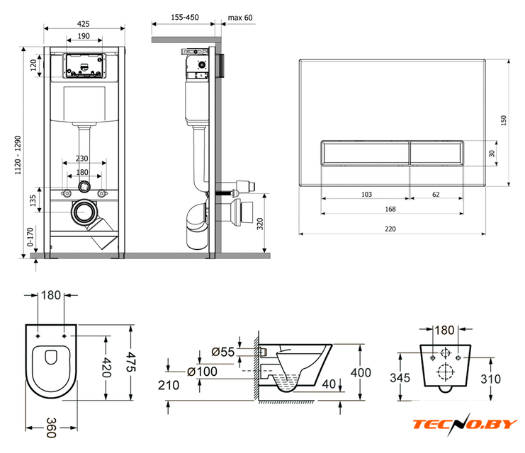 С размерами 36 см в ширину, 47.5 см в глубину и 36 см в высоту, унитаз идеально подходит для компактных ванных комнат. Его компактность не сказывается на функциональности и удобстве использования, делая его идеальным выбором даже для небольших пространств.