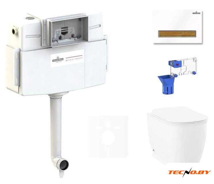 Все необходимое уже в комплекте: инсталляция, бачок, сиденье и даже бачок для чистящей жидкости. Это значительно упрощает процесс установки и экономит ваше время. Кнопка смыва внедрена в дизайн так, что остается незаметной, но доступной при первой необходимости.