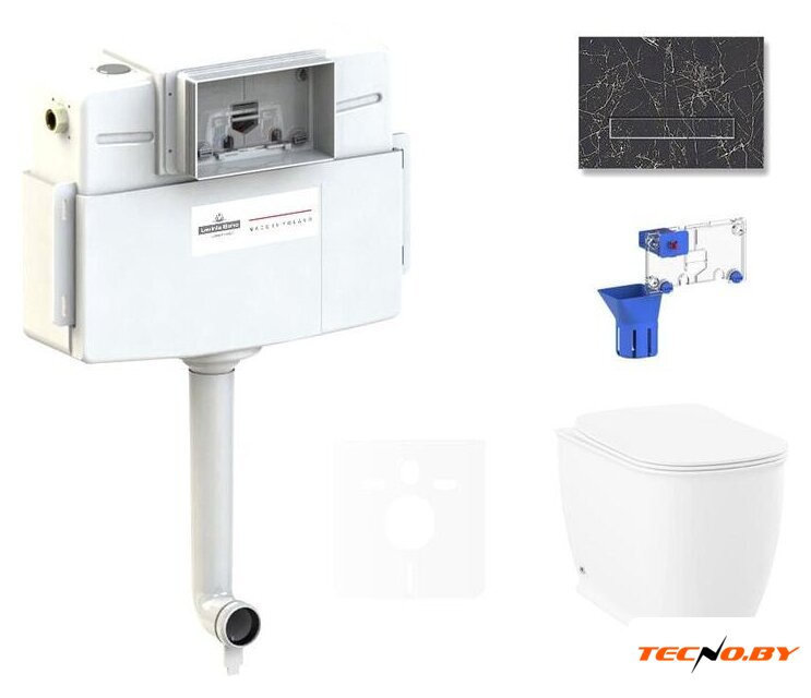 Унитаз оснащен дюропластовым сиденьем, которое отличается прочностью и долговечностью. В комплекте есть пневмокрышка с микролифтом, обеспечивая плавное и бесшумное закрытие, что повышает уровень комфорта использования. Комплектация также включает бачок и кнопку смыва, что делает установку быстрой и легкой, без необходимости приобретения дополнительных компонентов.
