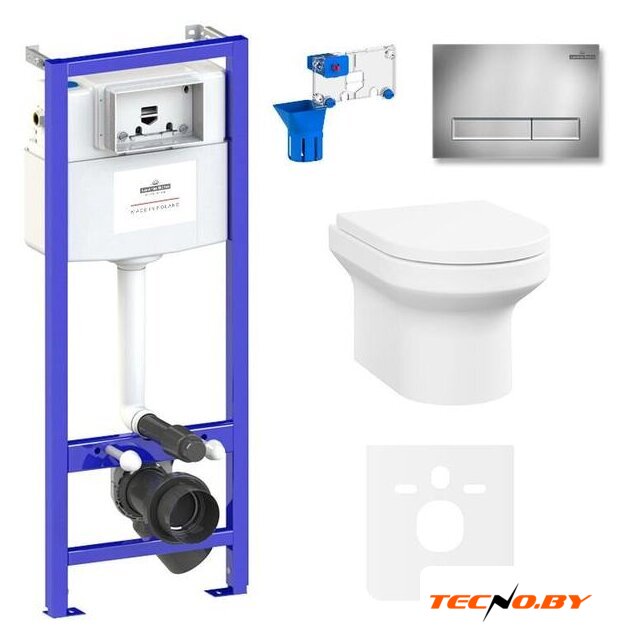 Комплектация унитаза включает все необходимое для максимального комфорта. Инсталляция и бачок уже включены, пневмокрышка с микролифтом обеспечивает плавное и бесшумное закрывание. Сиденье выполнено из прочного дюропласта, который обеспечивает долговечность и комфорт в использовании. Стильная кнопка смыва из хромированного пластика добавляет изысканный акцент к общему дизайну.