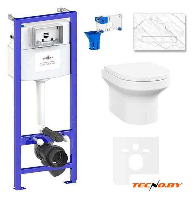 Унитаз поставляется с полной комплектацией для легкого монтажа. В комплект входит бачок, инсталляция и уникальная кнопка смыва, изготовленная из стильного statuary искусственного камня. Задний подвод воды и горизонтальный выпуск делают установку максимально удобной и быстрой.