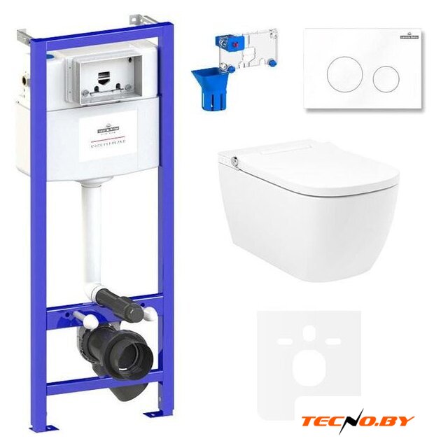 умный (электронный) унитаз, подвесной (с биде), конструкция: без бачка, задний подвод воды, горизонтальный выпуск, двухрежимный слив, с сиденьем, безободковый