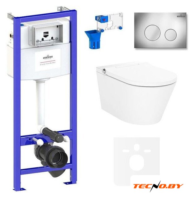 умный (электронный) унитаз, подвесной (с биде), конструкция: без бачка, задний подвод воды, горизонтальный выпуск, двухрежимный слив, с сиденьем, безободковый