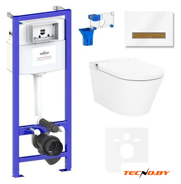 умный (электронный) унитаз, подвесной (с биде), конструкция: без бачка, задний подвод воды, горизонтальный выпуск, двухрежимный слив, с сиденьем, безободковый