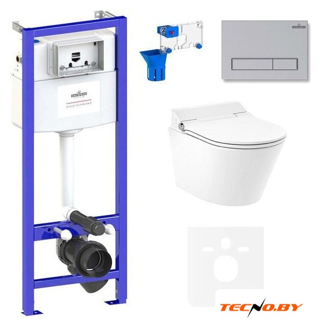 Включает все, что вам нужно. В набор входят: бачки (включая для чистящей жидкости), инсталляция, удобное сиденье и пневмокрышка с микролифтом, обеспечивающим плавное и бесшумное закрытие. Также в комплект входит кнопка смыва для вашего удобства.