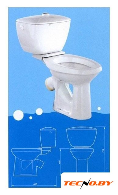 напольный, конструкция: компакт, нижний подвод воды, косой выпуск, двухрежимный слив, с сиденьем