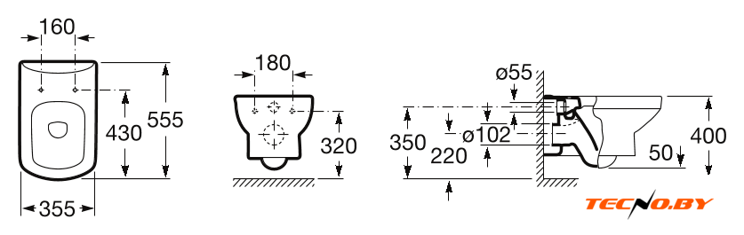 подвесной, конструкция: без бачка, задний подвод воды, горизонтальный выпуск, двухрежимный слив, безободковый