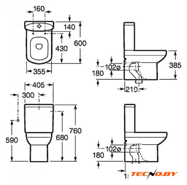 напольный, конструкция: компакт, нижний подвод воды, универсальный выпуск, двухрежимный слив, с сиденьем