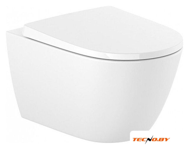 подвесной, конструкция: без бачка, задний подвод воды, горизонтальный выпуск, с сиденьем, безободковый