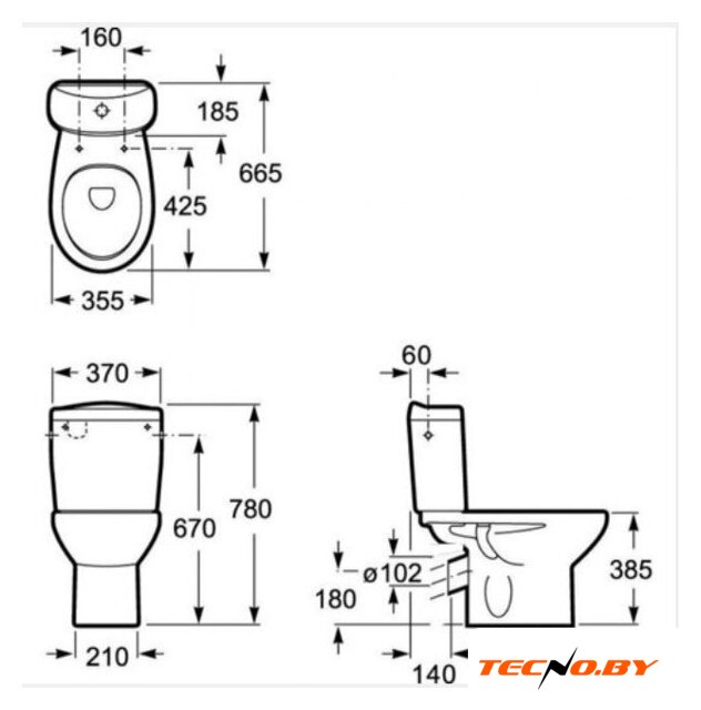 напольный, компакт, нижний подвод воды, косой выпуск, однорежимный слив, с сиденьем