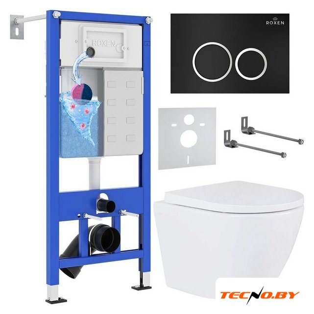 Унитазы Roxen Roxen Antares One Rimless 6 в 1 StounFix Dual Fresh 506495 (кнпка: черный матовый)