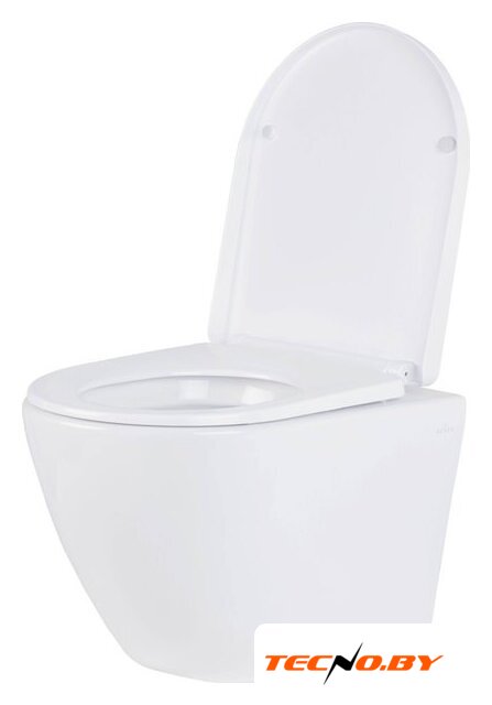 подвесной, конструкция: без бачка, задний подвод воды, горизонтальный выпуск, двухрежимный слив, с сиденьем, безободковый