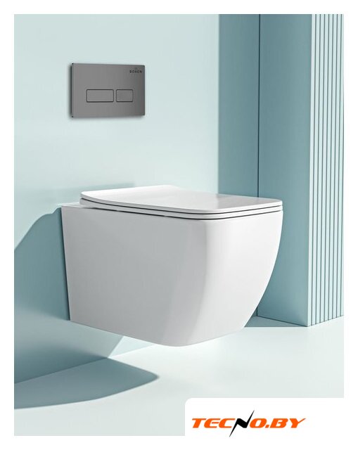 подвесной, конструкция: без бачка, задний подвод воды, горизонтальный выпуск, двухрежимный слив, с сиденьем, безободковый