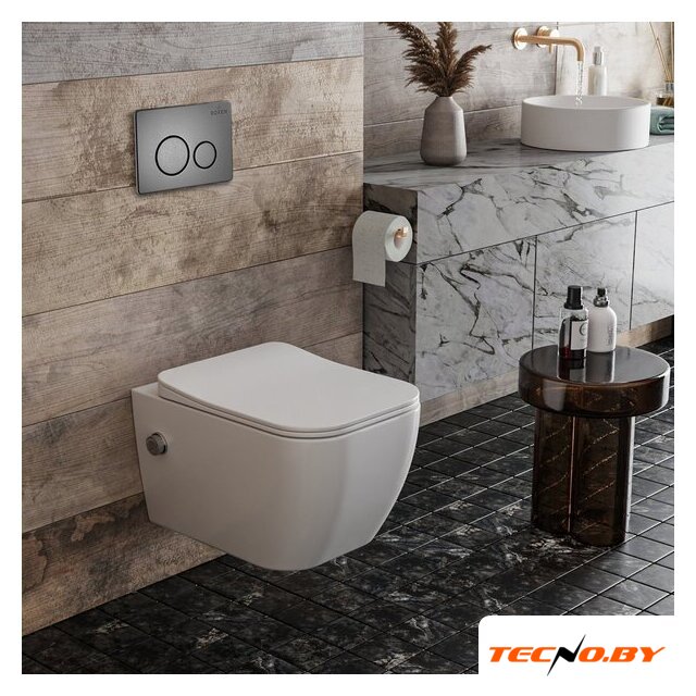 подвесной, без бачка, задний подвод воды, горизонтальный выпуск, двухрежимный слив, с сиденьем