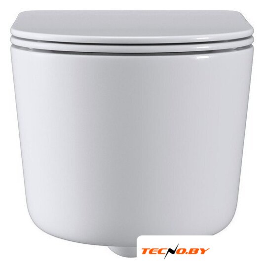 подвесной, конструкция: без бачка, задний подвод воды, горизонтальный выпуск, двухрежимный слив, с сиденьем, безободковый