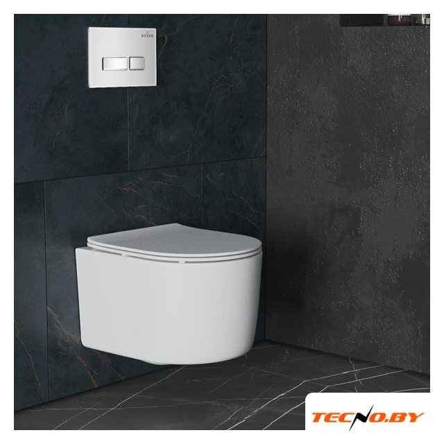 подвесной, конструкция: без бачка, задний подвод воды, горизонтальный выпуск, двухрежимный слив, с сиденьем, безободковый