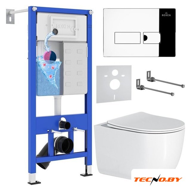 Унитазы Roxen Roxen Vortex Tornado в комплекте с инсталляцией StounFix Dual Fresh 6 в 1 964514 (кнопка: хром глянец)