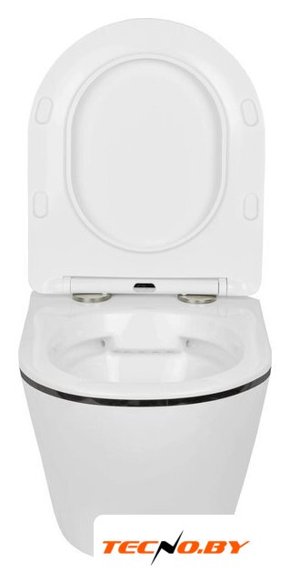 подвесной, конструкция: без бачка, задний подвод воды, горизонтальный выпуск, двухрежимный слив, с сиденьем, безободковый