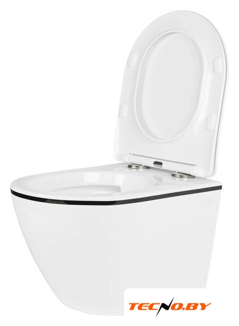 подвесной, конструкция: без бачка, задний подвод воды, горизонтальный выпуск, двухрежимный слив, с сиденьем, безободковый