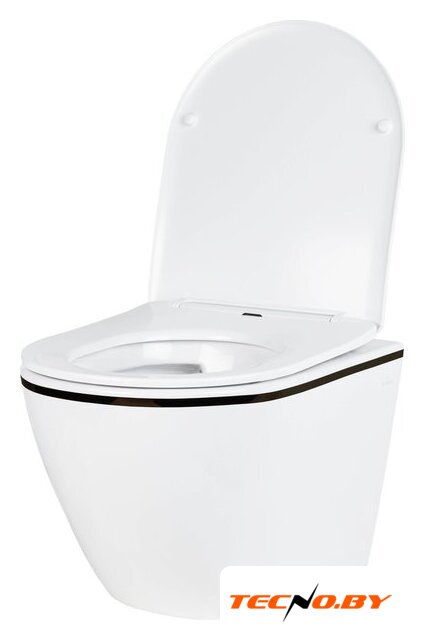 подвесной, конструкция: без бачка, задний подвод воды, горизонтальный выпуск, двухрежимный слив, с сиденьем, безободковый